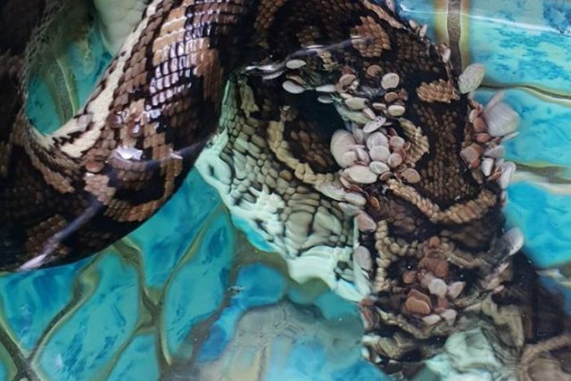 Ular sanca karpet dipenuhi kutu pengisap darah