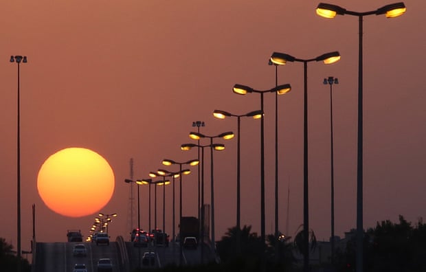 Kondisi untuk pria dan wanita yang dipaksa bekerja di luar ditetapkan untuk memperburuk: antara 2010 dan 2035, suhu rata-rata tahunan Kuwait akan meningkat sebesar 1,6% menjadi 28,7C, menurut Environmental Public Authority (EPA) negara tersebut, yang membuat musim panas Suhu semakin terik dan diperburuk badai debu yang sudah menimpa Kuwait City dan sekitarnya.