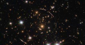 Seulas cahaya yang terlihat membentuk lengkungan di bagian tengah foto terbaru Hubble bukanlah gambaran benda langit yang aneh atau noda di lensa teleskop angkasa....