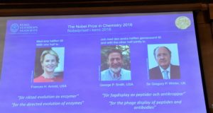 Ilmuwan AS Frances Arnold dan George Smith dan peneliti Inggris Gregory Winter memenangkan Hadiah Nobel Kimia berkat menerapkan prinsip-prinsip evolusi untuk mengembangkan protein yang...